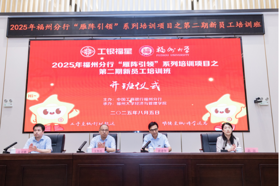 为提升新员工的专业素养和综合能力,助力其快速融入工作岗位,2025年8月5日至8日,由中国工商银行福州分行主办、福州大学经济与管理学院承办的 “雁阵引领” 系列培训项目之第二期新员工培训班顺利举行。来自福州分行各部门及网点的新员工齐聚一堂,参加了此次为期四天的集中培训。