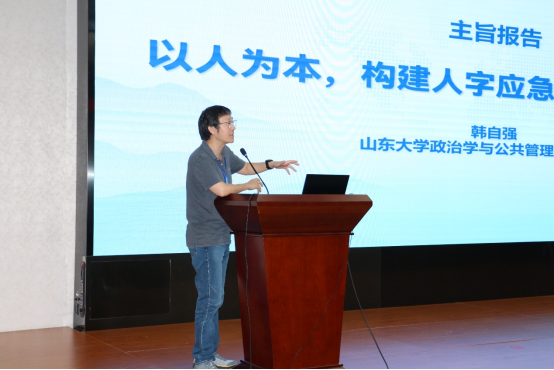 主旨报告由三位专家围绕应急管理的前沿理念与实践技术进行分享。国家预警信息发布中心副首席杨继国就《新时期预警发布工作及业务体系建设》为题,通过线上形式为到场专家学者、听众科普气象预警相关知识,分析典型案例。福建省预警信息发布中心副主任赵伯听以《福建省预警信息发布能力现状和发展思考》为题,介绍了当前福建省气象工作的科技进展和现今,并邀请更多学者为推动气象工作高质量发展展开合作研究。山东大学政治学和公共管理学院韩自强教授作《以人为本,构建人字应急管理全流程框架》主旨报告,报告中介绍了何为“人字应急管理全流程框架”。本场主旨报告邀请福州大学经济与管理学院院长助理汪婧副教授主持。