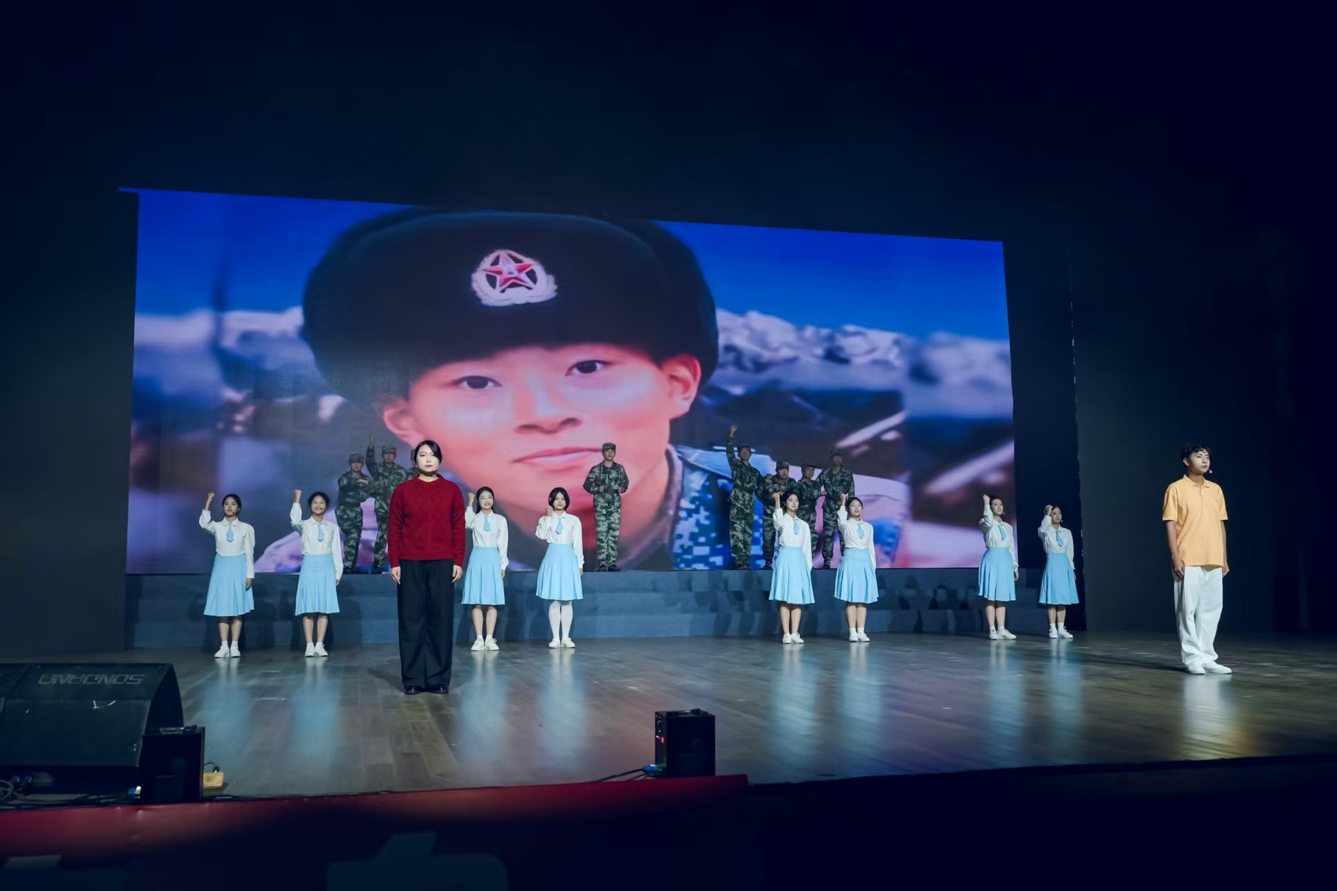 晚会伊始,开场舞《舞动青春》用动感舞步点燃全场,舞者们的活力展现了经管青年的蓬勃朝气。随后,歌曲《如愿》以清澈声线传递梦想期许,音诗画《清澈的爱,只为中国》则深情缅怀戍边烈士陈祥榕,这份对祖国的赤诚告白,触动了在场每一位观众的家国深情。