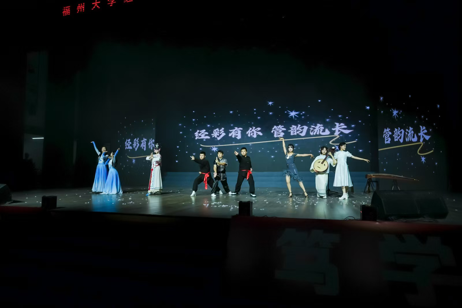 本次晚会以“经彩启航,梦想飞扬”为主题,分为“新然而至,经英筑魂”“聚力同行,管韵华章”“青春逐梦,经彩启航”三个篇章,通过多样艺术形式为新生打造了一场沉浸式视听盛宴。
