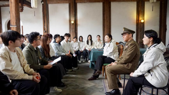 观演过程中,师生一行随剧情发展穿行于宫巷古厝之间,在时空交错的叙事中,触摸吴石将军舍生赴义、丹心报国的信仰力量。剧目以切片式场景串联英雄生涯,融入福州茉莉等“乡愁”文化元素,从赴台前的家国抉择、潜伏中的情报传递,到临刑前的丹心明志,深刻展现了吴石将军在家国大义与亲情牵挂间的坚定信仰与无悔担当。这种“行进+沉浸”的独特行浸式观演体验,打破了传统观演边界,师生仿佛置身历史现场,真切体悟先烈于无声处守初心、于险境中担使命的崇高风骨。当吴石将军“凭将一掬丹心在,泉下差堪对我翁”的绝笔诗句响彻全场,在场师生无不动容,于热血中读懂“血性福州”的精神底色,在强烈的情感共鸣中上了一堂直抵人心的“行浸式”情景党课。