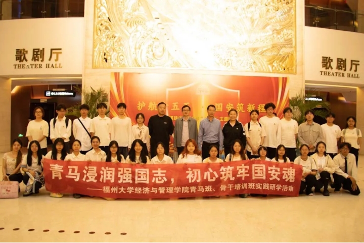 为深入学习贯彻总体国家安全观,强化学生骨干国家安全意识,深化青马工程与骨干培训班育人实效,福州大学经济与管理学院于4月12日顺利开展“青马浸润强国志,初心筑牢国安魂”实践研学活动。在校团委书记叶阁泽老师、校团委周一帆老师、院团委书记牛秋月老师的带领下,学院29名青马班、骨干培训班、星火青讲团学生代表前往福建大剧院现场观摩“护航十五五·国安筑新程”福建省2026年“4·15”主题晚会。
