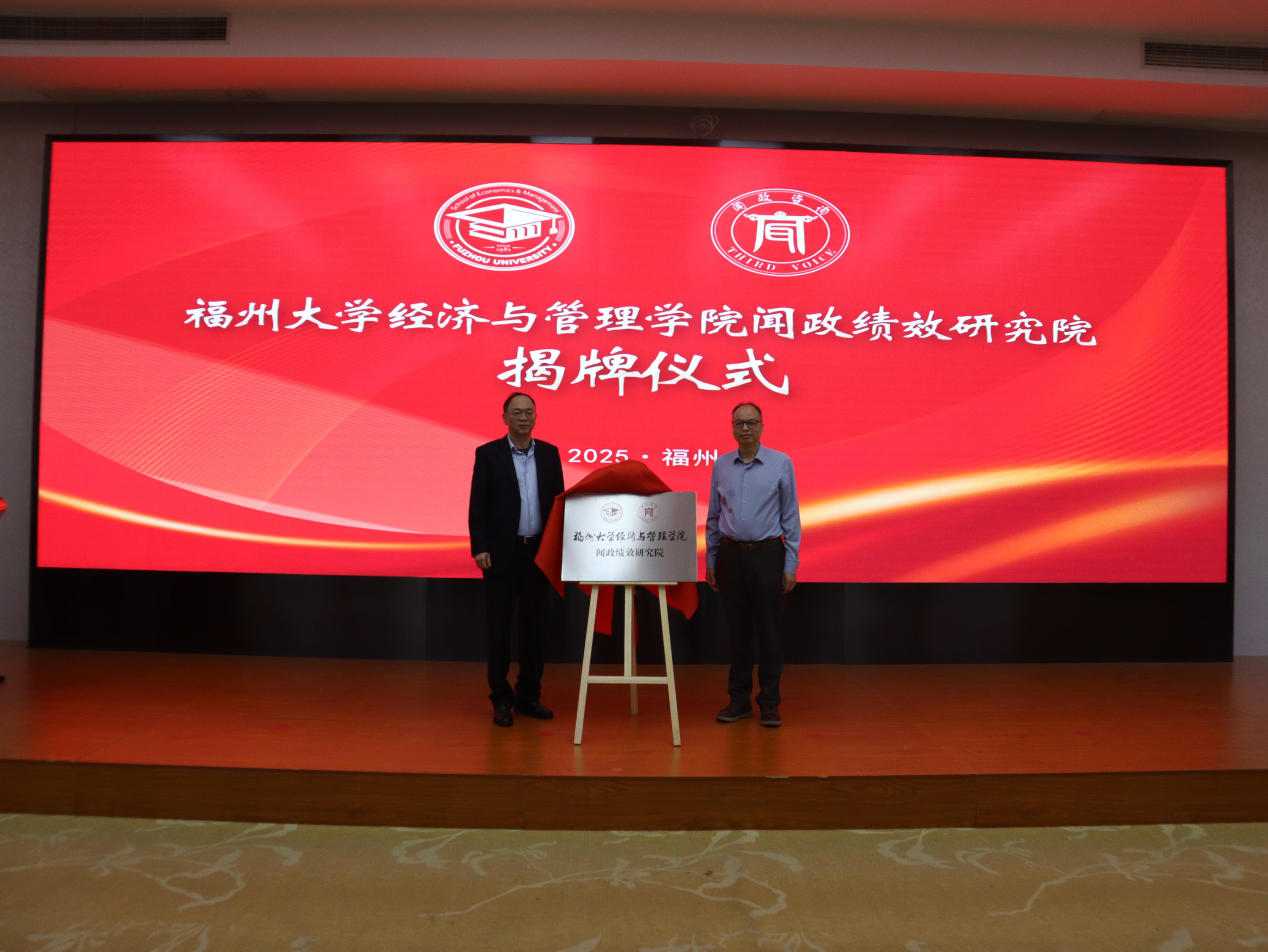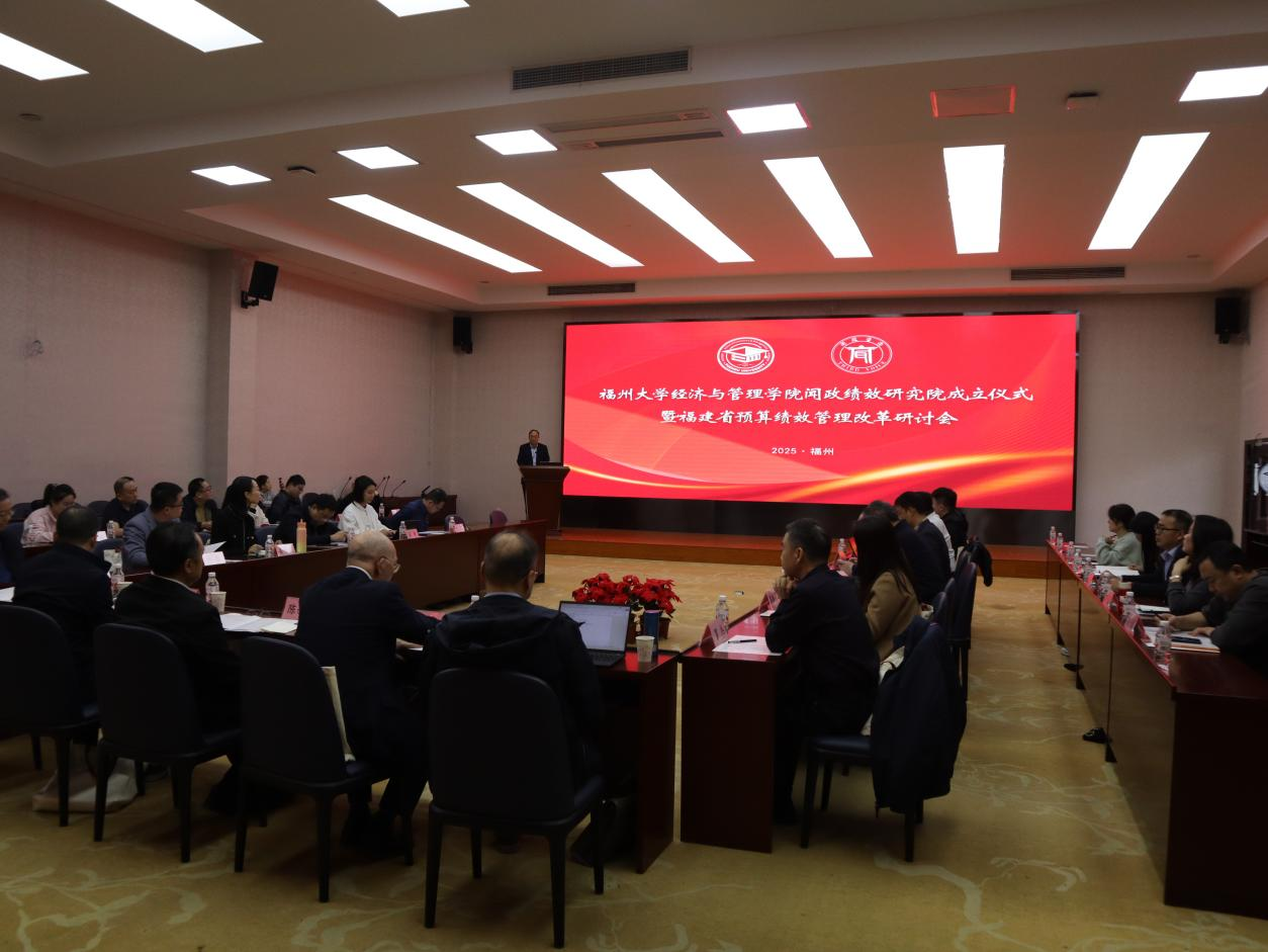 为深入贯彻落实习近平新时代中国特色社会主义思想和党中央关于全面实施预算绩效管理的决策部署,根据《中共中央国务院关于全面实施预算绩效管理的意见》(中发〔2018〕34号)精神,以及福建省委、省政府关于深化财税体制改革、健全预算管理制度的工作要求,进一步推动高校智库建设与产学研深度融合,提升公共绩效管理研究与成果转化能力,由我院和上海闻政管理咨询有限公司共同举办的《福州大学经济与管理学院闻政绩效研究院成立仪式暨福建省预算绩效管理改革研讨会》于2025年12月12日下午在福州大学经济与管理学院西楼400报告厅顺利召开。参加研讨会的主要嘉宾包括财政部门、高校、科研机构相关学者和一线工作人员代表30多人。
