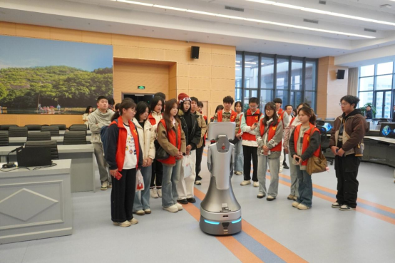 在省气象预报中心,智能机器人引导并用生动易懂的语言,讲解了天气预报制作流程、灾害性天气识别标准与预警阈值设定等专业知识。在气象综合预报业务平台上,师生们看到了网格预报、短临预警、决策服务等功能模块有机融合,AI助手自动标注关键天气信息,解密了气象数据为防灾减灾决策气象服务提供智能化支持,以及灾害性天气预警联防的跨部门协同机制。对福建特色、全国首创的“1262”递进式决策气象服务体系的精细化、针对性和技术迭代、流程再造、平台优化、人才转型、科技赋能、服务增效六个维度的“116”智能数字预报工作体系的专业化、系统性有了深刻的认知。