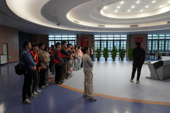在省气象数据中心,可视化大屏上全省地面观测数据、雷达回波、卫星云图等多源气象数据交互融合和实时更新,完整呈现了数据采集、加密传输、模型分析、预报生成的全流程。讲解老师卢睿霖详细介绍了大数据技术如何为精准气象预报、灾害风险评估提供核心支撑,让师生们直观感受气象科技在提升灾害应急管理效能中的第一道防线作用。