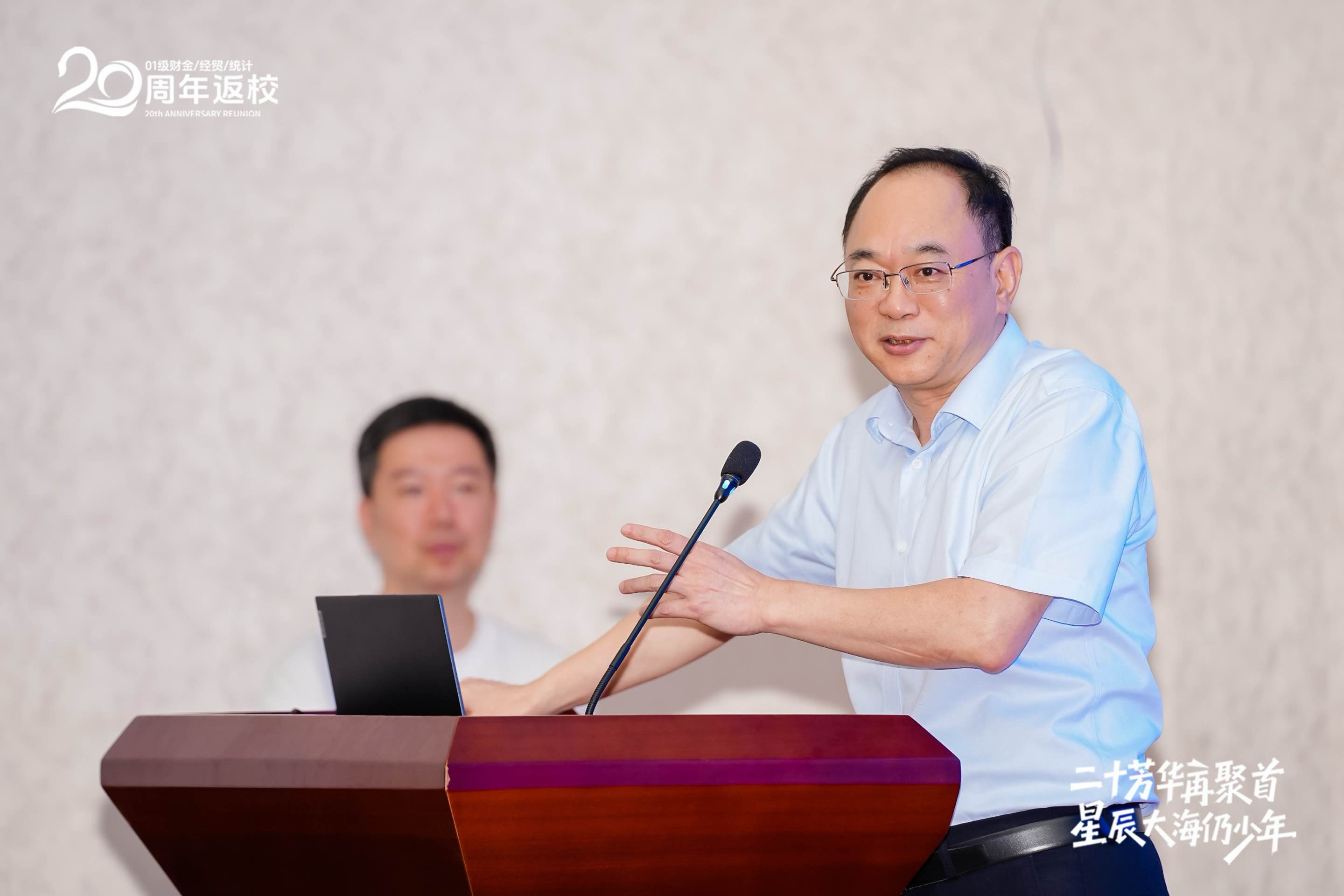 我院党委石炳文书记深情致辞,向重返母校的校友表示热烈欢迎,并介绍了学校、学院近年来的发展成就。他表示,不管各位校友走多远,也不管发展得怎么样,学院都时时刻刻牵挂着大家、祝福着大家。他强调,校友是学校“第一财富、第一资源、第一标识、第一牵挂”,学院与校友是永远的情感共同体。这番真挚的话语引发了在场校友的强烈共鸣。