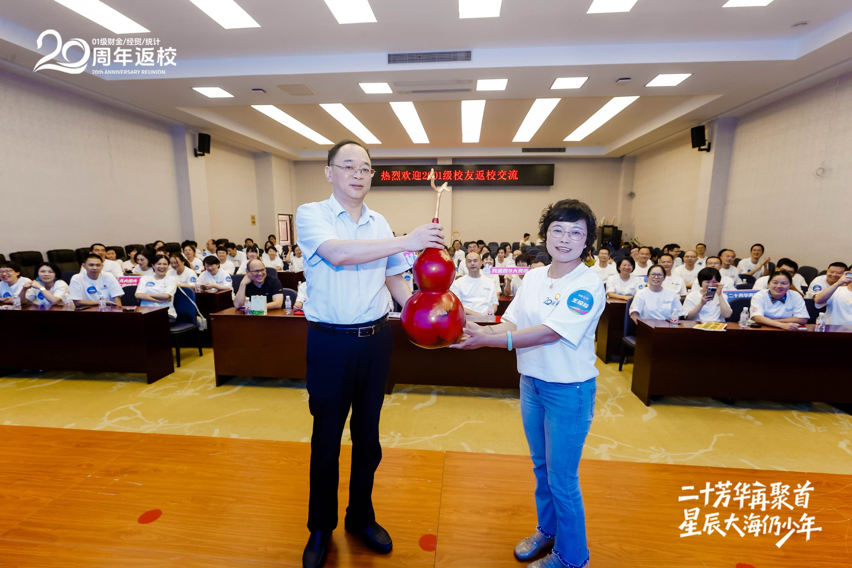 活动中,校友们向学院赠送了寓意深长的福州传统大漆工艺葫芦纪念品,葫芦谐音“福禄”,不仅寓意母校福泽绵长,更象征着师生情谊在岁月的打磨下历久弥新。这份寓意深长的礼物,承载着校友们对母校的深深祝福与感恩之情。