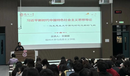 讲座开篇,王丽丽老师分层拆解习近平新时代中国特色社会主义思想,围绕“主要创立者”与“社会历史条件”两大脉络展开讲解。在创立者介绍环节,她从纵向与横向维度详细梳理习近平总书记从基层起步、涵盖党政军民学各领域的丰富从政履历。结合福州大学校情,她讲述了习总书记与学校建设创业型“东南强校”战略目标的渊源,回顾学校在历任校长带领下的奋进历程,勉励学员在学业与实践中勇毅前行。