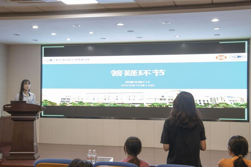 随后,张婷老师围绕学生宣传干部的核心能力提升,重点分享了新闻稿写作与校园故事的讲述方法。她指出,宣传工作肩负思想引领、文化孵化、形象塑造、师生连接的战略使命,需遵循“对的信息+渠道+方式,触达对的人,从而产生对的影响”的传播逻辑。凭借自身丰富工作经验,她提出“三魂、两题、双适配”口诀:以原创、准确、思想“三魂”原则为根基;以消息类新闻“快准简”与通讯类新闻“重细节场景”的写作技巧为支撑;以官网、公众号等不同平台特性为抓手,结合同学、老师、校友的需求“因场裁衣”适配内容。最后,张老师以“丁真现象”“学霸宿舍”等爆款案例为借鉴,倡议大家建立系统策划意识,将被动宣传任务转化为主动价值创造,有规划的发掘身边的鲜活的校园故事,让经管声音更具感染力。