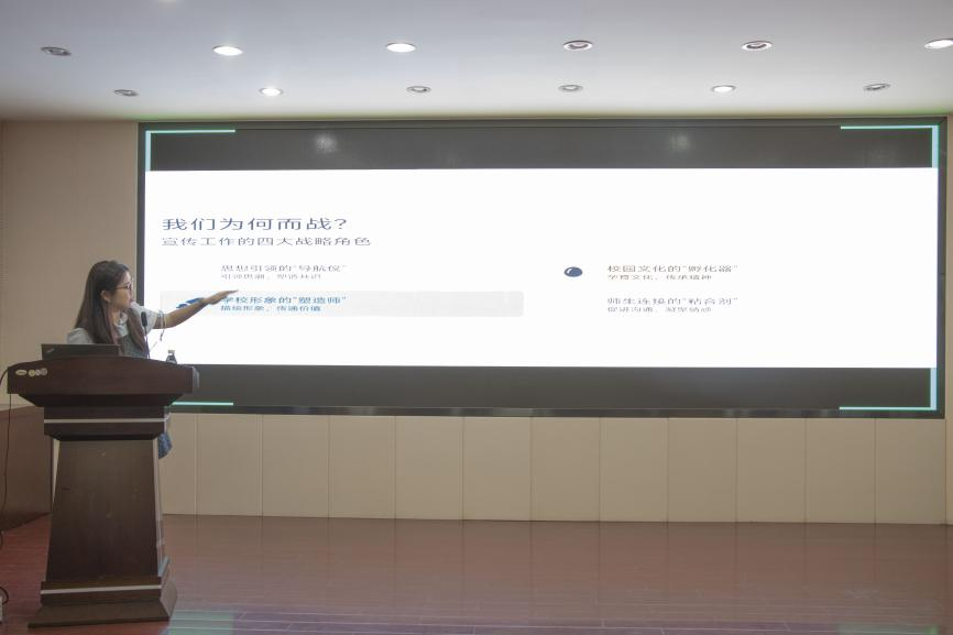 在互动交流环节,现场气氛热烈,学生骨干们结合自身宣传工作中遇到的实际问题向两位老师踊跃提问,就“梨花体和单图形式可以在何种情形下有效利用?”“投稿至不同媒体的新闻稿,有哪些对应的特殊要求与做法?”等问题展开深度探讨。针对这些问题,二位老师结合宣传工作实际作出详细解答。她们深度解析了不同创意形式在各类推文中的运用技巧,分享了各类媒体平台的相关要求,更提供了许多在校园日常生活中发掘特色题材的方法,向同学们传授了丰富的宣传技能。会后,不少参训骨干纷纷表示,此次培训不仅解决了宣传工作中遇到的诸多疑虑,更点燃了他们的宣传创作热情。