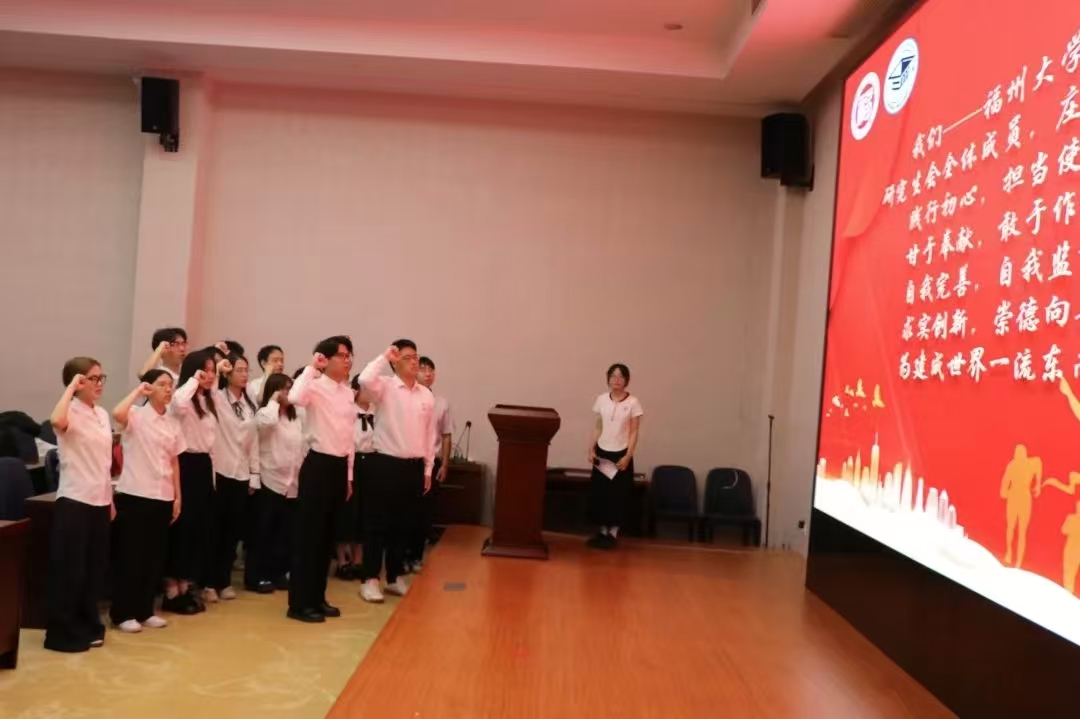 交接仪式上,上一届主席团代表将承载着荣耀与传承的旗帜,郑重交予新一届代表手中。紧接着,新任团委、学生会、研究生会全体学生骨干集体宣誓。愿这庄严时刻化作他们心中不灭的星火,照亮前路,激励担当,共同谱写经管学院明日之华章。
