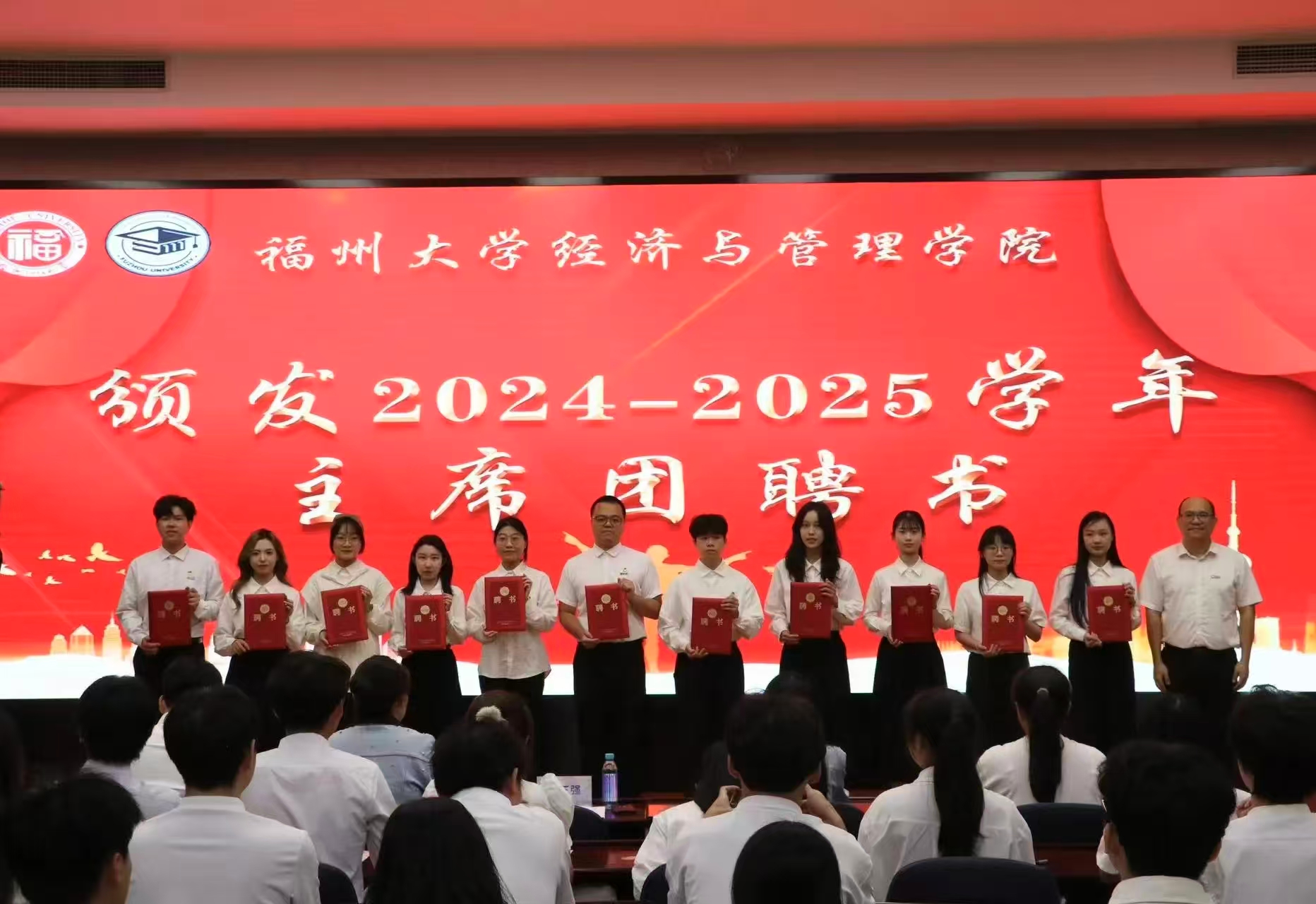 大会伊始,院党委副书记王三强为2024-2025学年主席团颁发聘书;院团委书记牛秋月为最美工作者与优秀部长颁发荣誉证书;院团委副书记唐丽萍则为团委、学生会、研究生会部长颁发聘书。这不仅意味着对他们过去一年工作成果的高度肯定,也激励着新一届部门工作者奋楫争先,砥砺前行,再续经管辉煌。