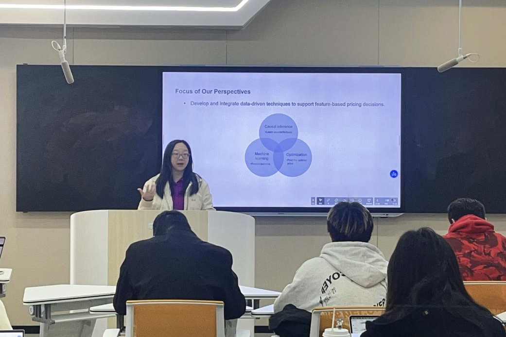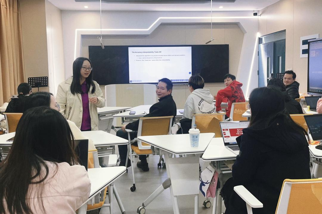 报告中,周教授围绕数据驱动的智能定价策略这一核心主题展开深度分享。周教授结合航空机票浮动定价、零售商品促销等实际案例,深入分析动态定价机制与各类促销策略的应用逻辑。随后,她以牛油果保质期预测模型构建为例,阐明数据预处理环节对提升算法预测精度的基础性作用。最后,周教授重点探讨了在利用机器学习进行个性化定价时,如何在模型预测准确性与可解释性之间取得平衡。