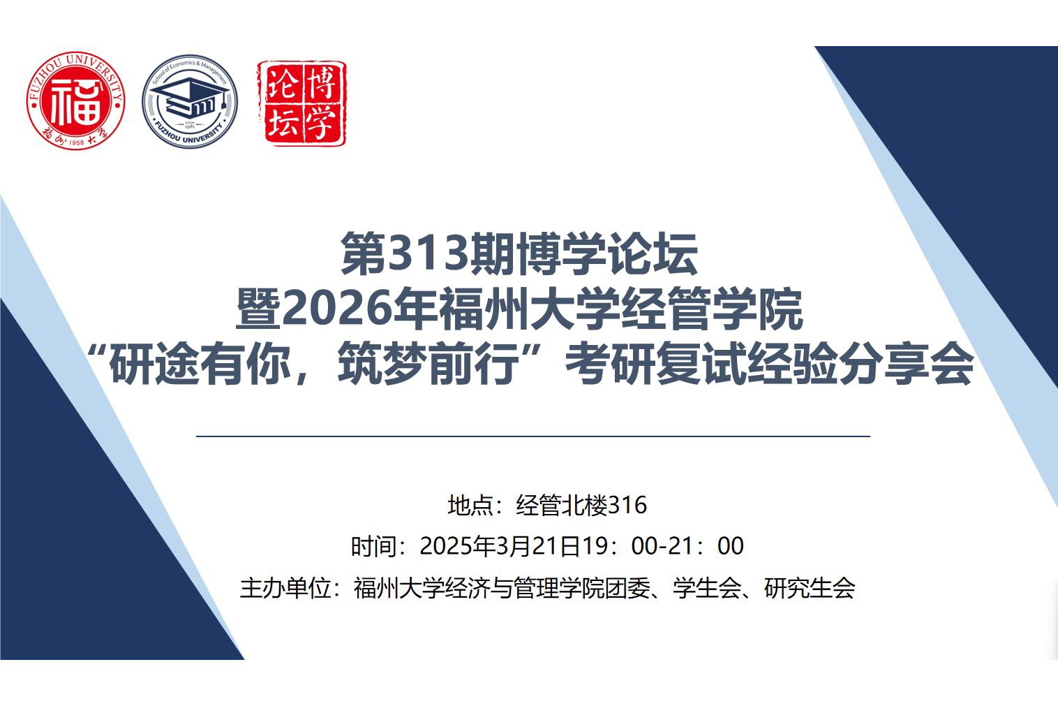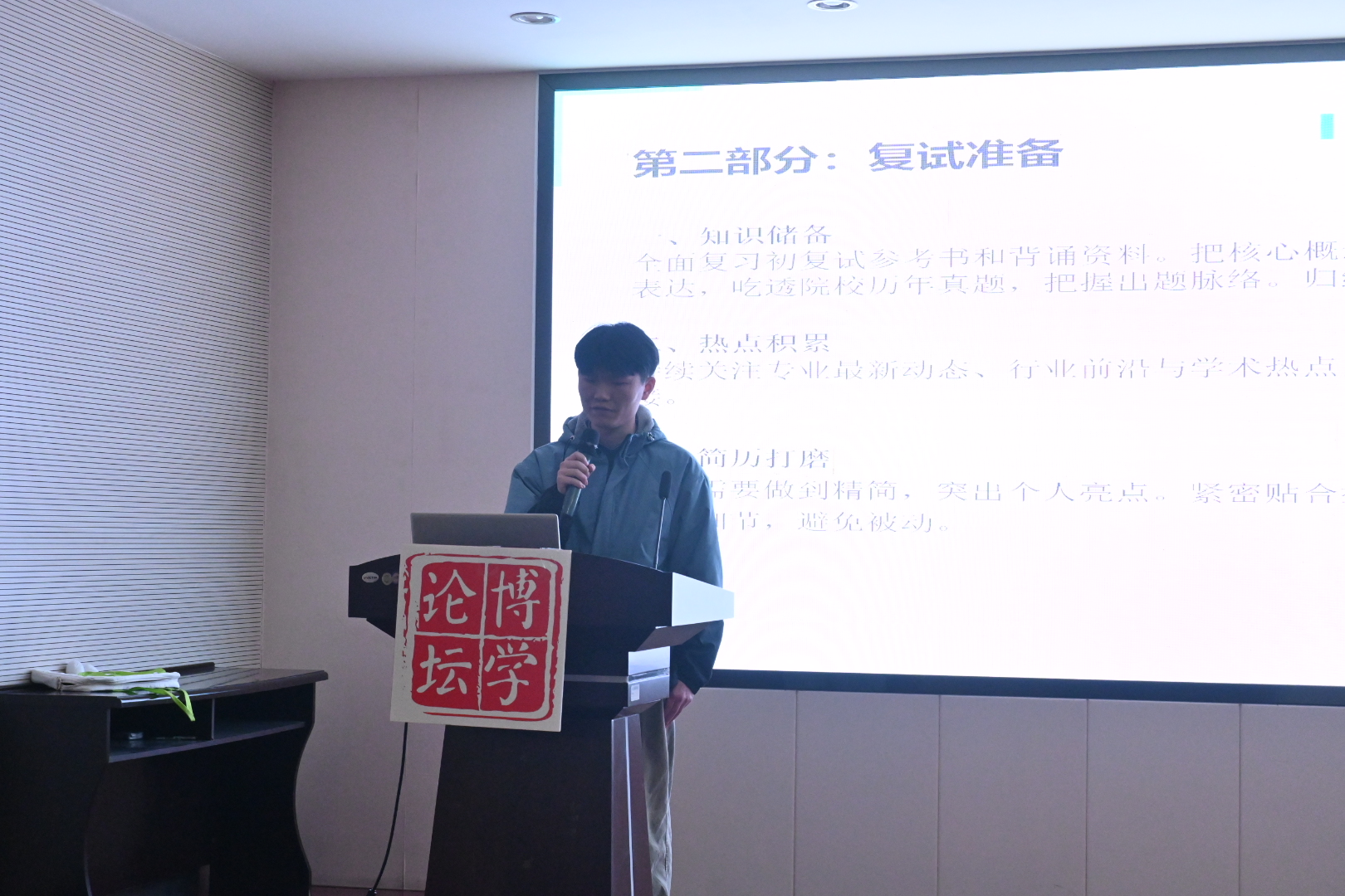 随着2026年全国硕士研究生招生复试工作的陆续开展,我院考研学子正处于备考迎考的关键时期。为帮助同学们全面了解复试流程、掌握科学高效的备考方法,3月21日,我院研究生会学术科技部与院团委学风建设中心于经管北楼316共同举办了第313期博学论坛暨“研途有你,筑梦前行”考研复试经验分享会。本次活动特邀六位在往年考研复试中表现优异的同学担任主讲嘉宾,围绕复试备考的各关键环节展开经验分享。