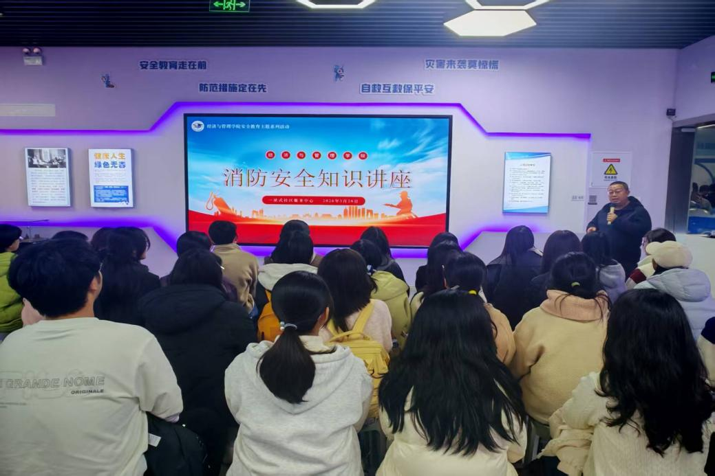 为切实增强学生安全意识,提升应急自救能力,2026年3月26日,经济与管理学院于福州大学安全文化示范馆举办校园安全教育暨消防安全演练活动。本次活动由张华老师担任现场主持人,学院2024级各班主要班干部共同参与。活动围绕消防知识宣传、应急逃生教育、灭火实操演练等核心内容展开,通过沉浸式学习与实战操作,有效提升了学生骨干的应急处置能力。