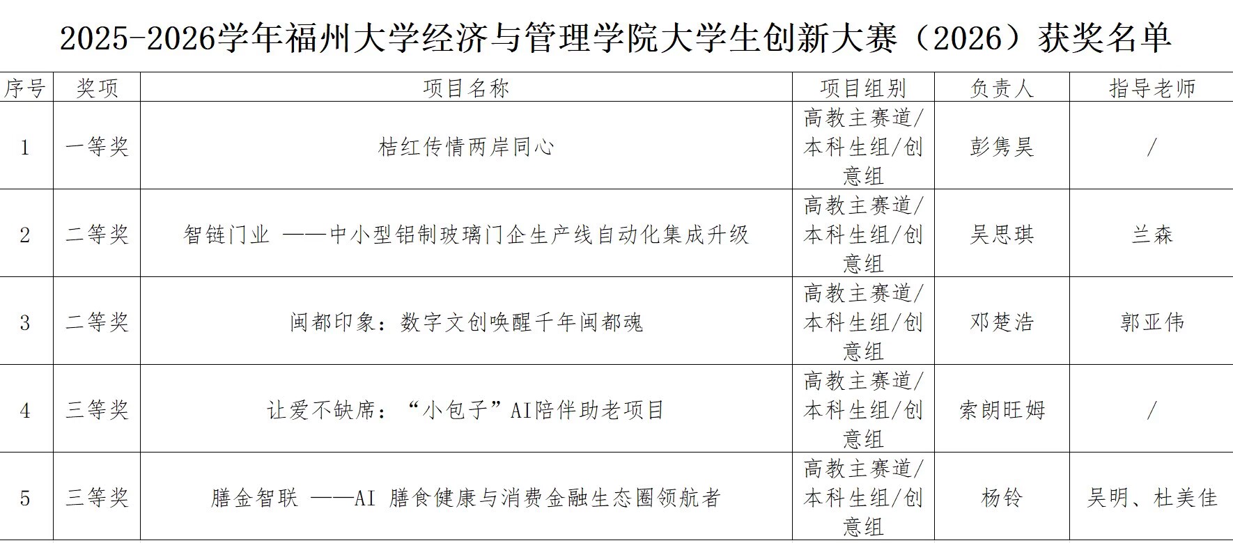为进一步激发学生创新创业活力,推动产学研深度融合,3月28日,经济与管理学院2026年大学生创新大赛在旗山校区以线上形式顺利举行。