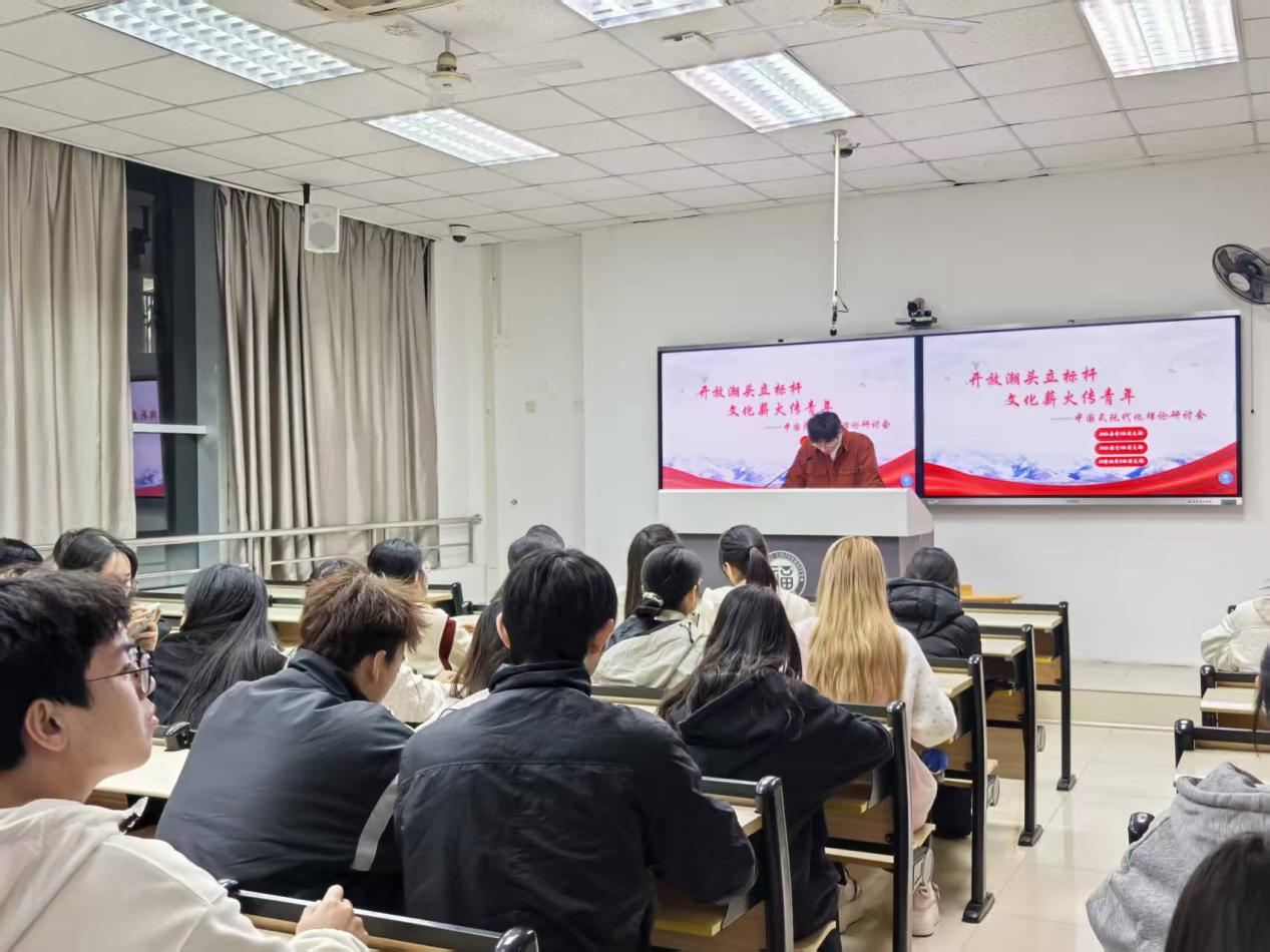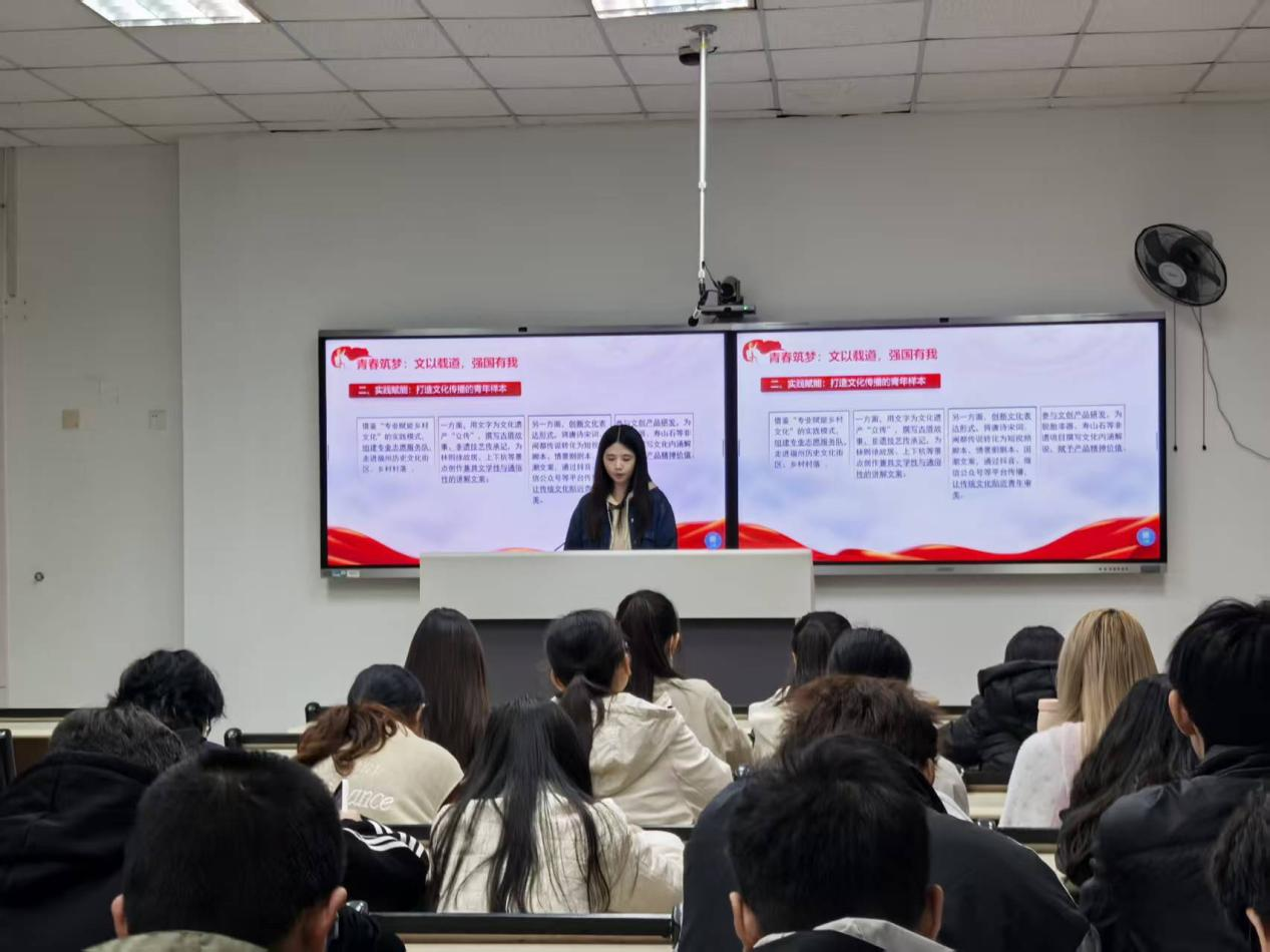 汉语言文学1班汇报小组以“中国式现代化的文化赋能路径——闽都文化创新实践的青年借鉴”为题,用鲜活案例勾勒文化与现代化的共生图景。