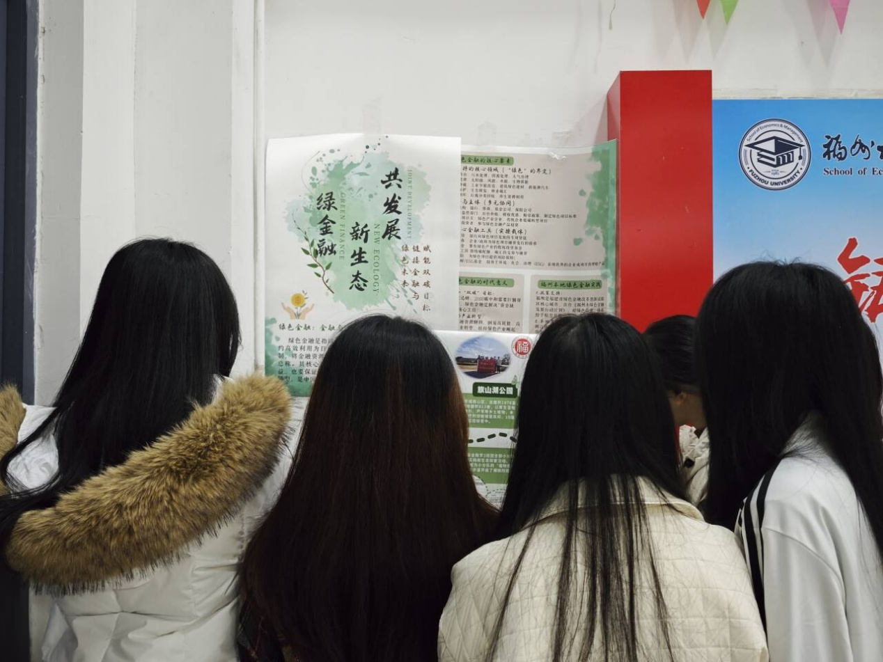 为扩大活动影响力,让绿色理念与绿色金融知识广泛传播,团员们带着精心制作的海报,有序前往宿舍区公告栏等师生往来密集的区域开展宣传。面对大家的提问,支部成员们耐心解答:从绿色金融的具体表现形式,到日常生活中的环保小技巧;从旗山湖的生态现状,到“双碳”目标的重要意义。一句话如同一颗绿色种子,在校园里无声播撒着环保理念,让“链接金融与绿色未来”的信念深入人心。