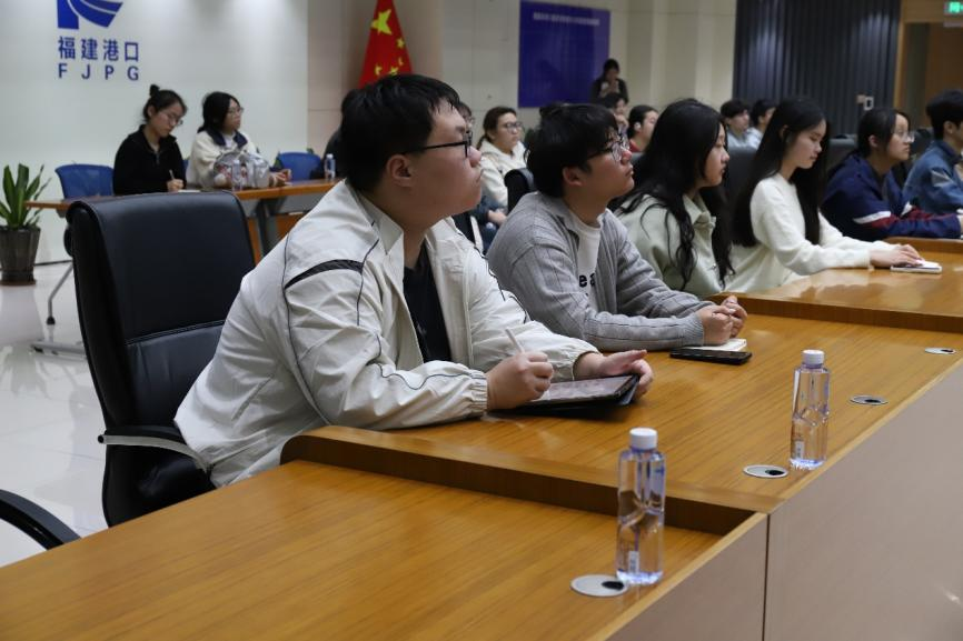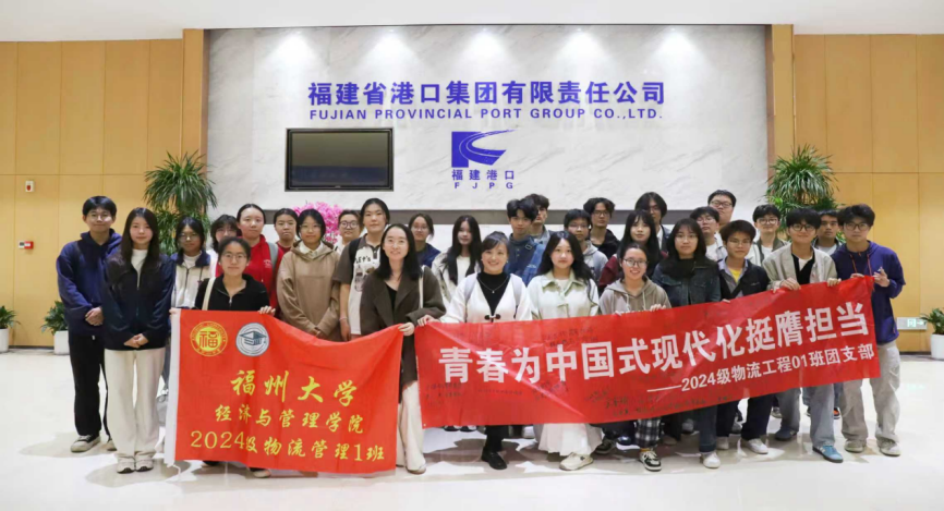 2025年12月1日,福州大学经济与管理学院2024级物流工程1班团支部联合物流管理1班团支部走进福建港口集团,开展“海上物流数字化实践探索”参访调研活动。在经管学院物流系教师张小利、翁欣的带领下,本次活动以“海上物流”为主题,让同学们实地感受当今时代下“海上物流”的真实面貌。大家将校园理论知识代入企业实践场景,不仅深化了对专业知识的理解,更有效搭建起理论与实际的联结桥梁,切实提升了专业应用能力。