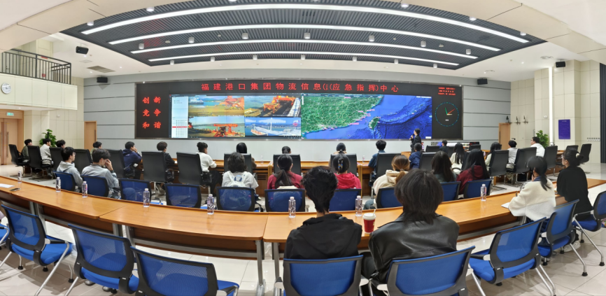 走进港口集团,物流信息中心的大屏幕上实时刷新的全球海运航线轨迹、海上监控画面及货物吞吐量数据,搭配展区内无人塔吊运作演示、智能集装箱定位系统,生动展现了福建港口在无人作业、全域管控等领域的核心优势,彰显了其作为东南沿海核心枢纽的强大实力。同学们既震撼于企业实力,也深刻认识到新时代学子需开阔视野、摒弃闭门造车的思维,以实践对接行业前沿、融汇理论与实操,在产教融合的沃土中锤炼专业本领,为物流行业高质量发展注入青年动能。