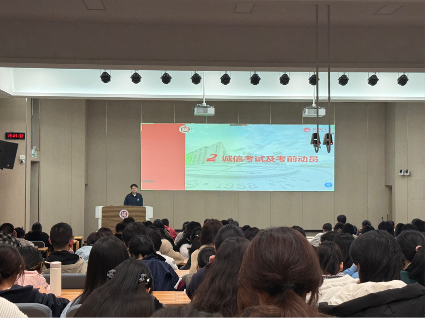 诚信考试与考前动员是本次大会的核心议题。针对期末复习,许凯阳老师提出“三阶段复习法”,建议大家提前启动复习,通过知识梳理、强化练习与模拟冲刺逐步巩固所学,并强调筑牢基础、自主思考”的复习核心,提醒同学们合理运用AI工具提升效率,同时警惕过度依赖导致的思考钝化与学术诚信风险。会上详细列明了考试必备用品清单与考场纪律,通过27个典型违规案例警示学生,明确考试作弊将面临成绩无效、取消补考资格、纪律处分记入档案等严重后果,引导学生诚信应考。此外,老师还解读了学业预警机制、缓考缺考规则及绩点计算标准,让学生清晰知晓学业要求与相关权益。
