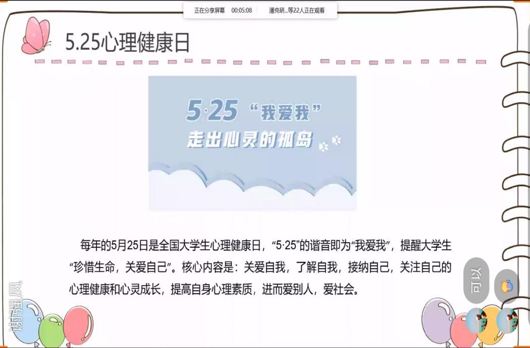 2020年5月11日15时,我院2018级工业工程01班开展了5.25线上心理主题班会,这是疫情居家上网课期间的第一次心理主题班会。