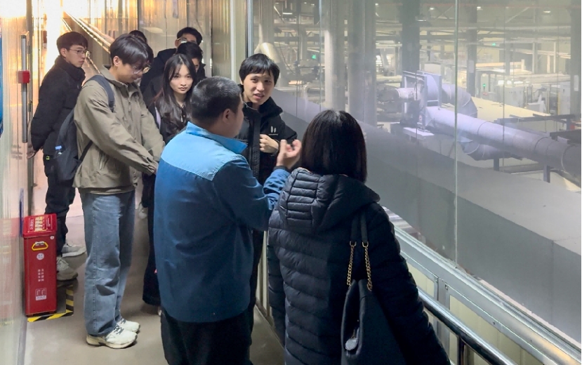 在佳利仑纤维企业有限公司,总经理陈伟向实践队介绍了企业以“原液着色”为核心的工艺路线。该技术从纤维生产源头添加色浆,实现产品与颜色一体化成型,大幅降低水资源消耗与废水排放,展现出绿色工艺对传统纺织环节的变革潜力。同时,实践队重点考察了企业的原料回收网络和色彩管理系统,清晰把握了再生资源从回收、分拣到高值化复用的全流程脉络,对绿色制造“从理念落地到效益转化”的实践逻辑形成了系统性认知。