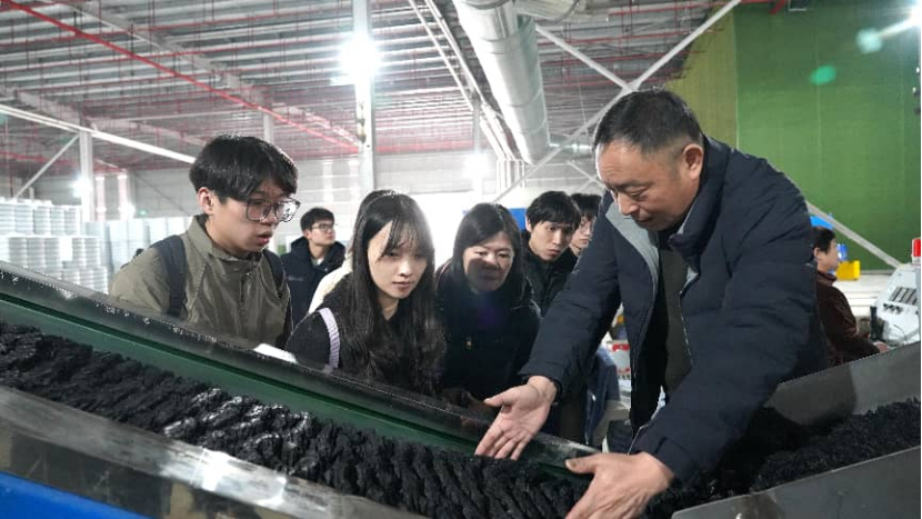 在高质量发展背景下,循环经济成为产业转型重要方向,实践队走进松溪县三和循环经济产业园,围绕“一根丝”特色产业,调研新材料产业与循环经济协同发展模式。实践队先后走访佳利仑纤维、雷尔新材料、常松新材料三家企业,在佳利仑纤维企业有限公司,总经理陈伟介绍了企业以“原液着色”技术实现绿色生产、从源头降低资源消耗的工艺路线;雷尔新材料有限公司总经理丁启胜分享了企业以市场需求驱动技术迭代、打造定制化产品优势的发展路径;在常松新材料科技有限公司,实践队与企业相关负责人及松溪县三和循环经济产业园管委会副主任林宗煜交流,了解到企业凭借全国唯一的“物理法”再生技术,构建起废旧纺织品循环利用闭环产业链,同时以“以商招商”、保障本地订单等举措彰显链主企业担当。松溪在循环经济领域的实践,让实践队清晰理解了“环保与效益双赢”的产业发展逻辑。