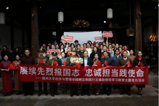 为深入学习贯彻习近平文化思想,赓续闽籍英烈红色血脉,扎实开展树立和践行正确政绩观学习教育,3月26日,福州大学经济与管理学院组织师生代表走进福州三坊七巷宫巷拾捌号,举行“赓续先烈报国志 忠诚担当践使命”树立和践行正确政绩观学习教育主题党日活动。院党委书记石炳文、副书记王三强、高银燕,副院长吴鹏,政工干部队伍、学生青马班代表、样板支部代表、红色宣讲团成员等共同参与本次活动,一同观看由福建人民艺术剧院倾情打造的沉浸式实景戏剧《冷月无声——吴石传奇》。